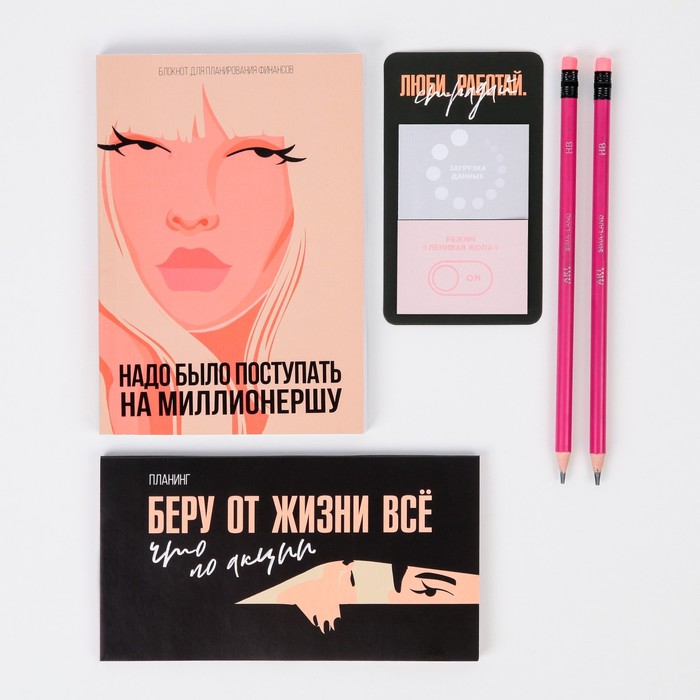 Подарочный набор «У меня совместимость только с двумя знаками»: Кешбук А6 64 л, планинг 50 л, стикеры и карандаши ч/г (2 шт) — Характеристики
