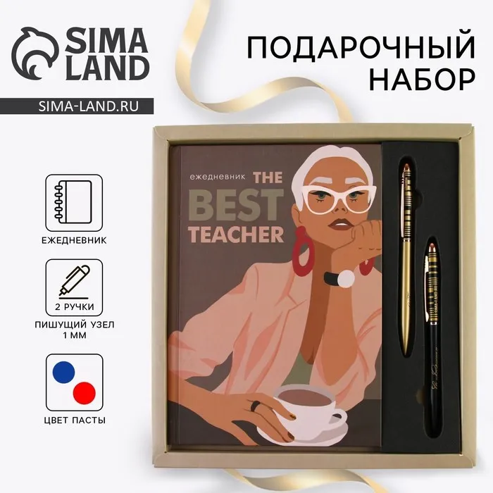 Подарочный набор «Учителю: The BEST TEACHER»: ежедневник А5, 80 листов и 2 шт ручки (шариковые, 1 мм, синяя,красная паста) — Характеристики