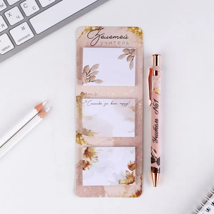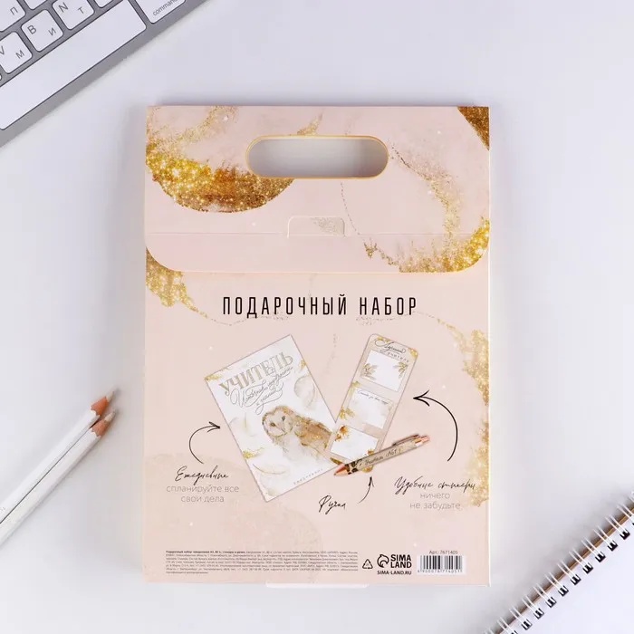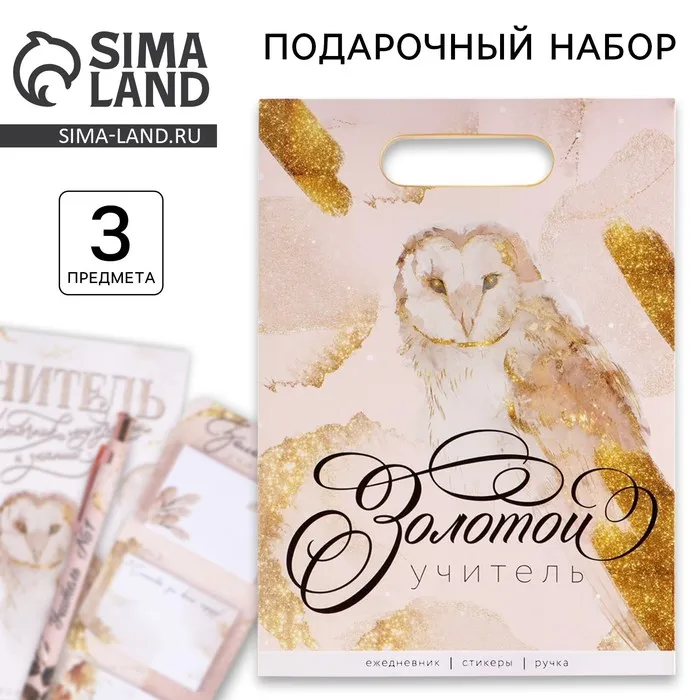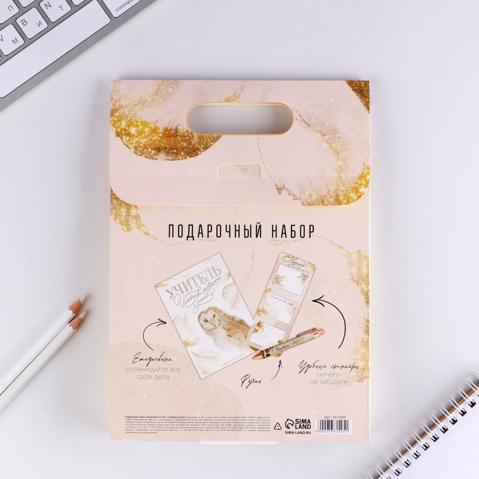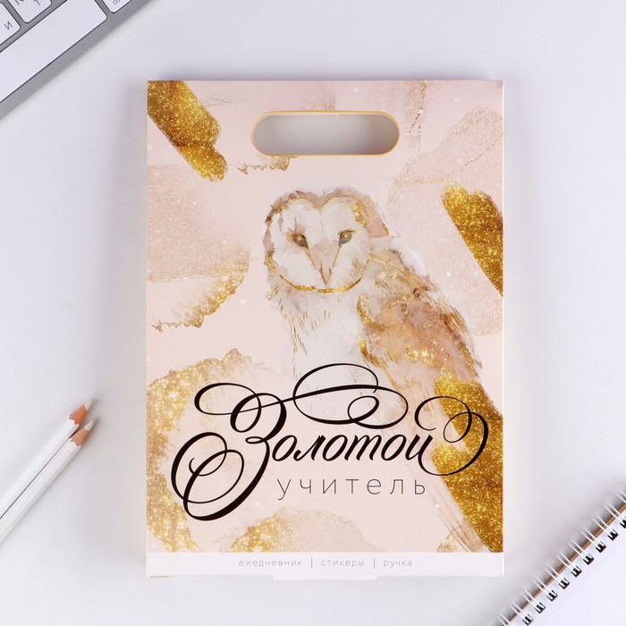 Подарочный набор «Учителю: Золотой учитель»: ежедневник А5, 80 листов, стикеры и ручка шариковая, синяя паста — Характеристики