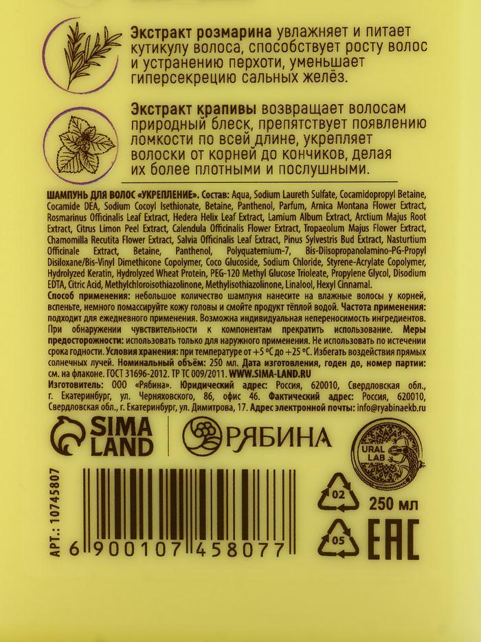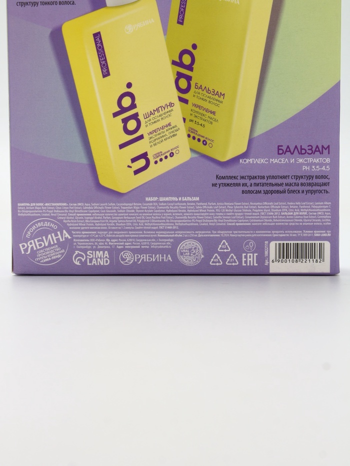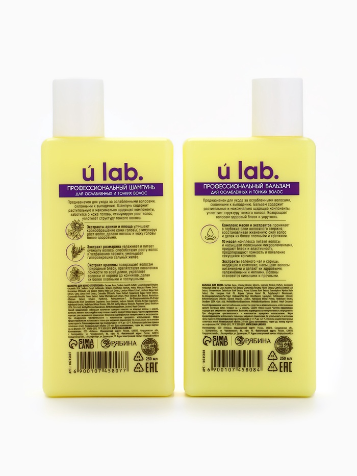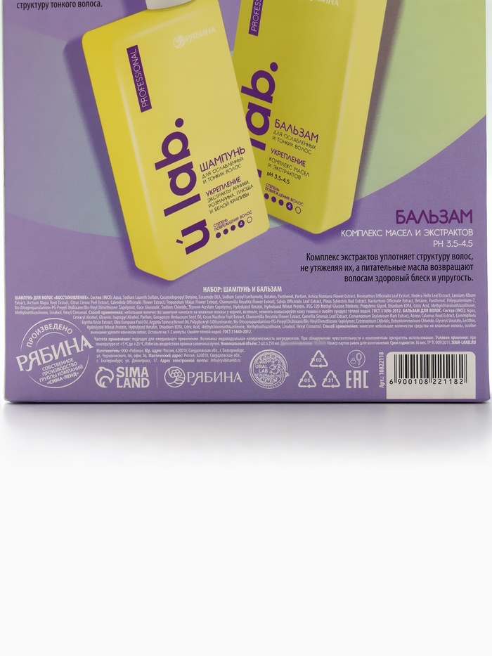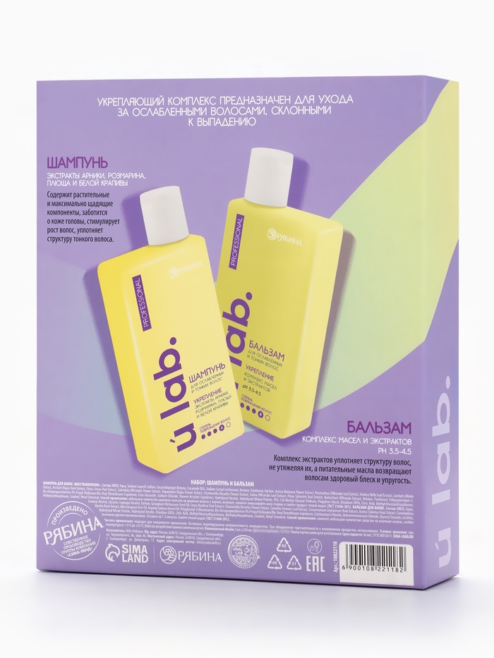 Подарочный набор «Укрепление»: шампунь 250 мл, бальзам 250 мл, URAL LAB — Характеристики