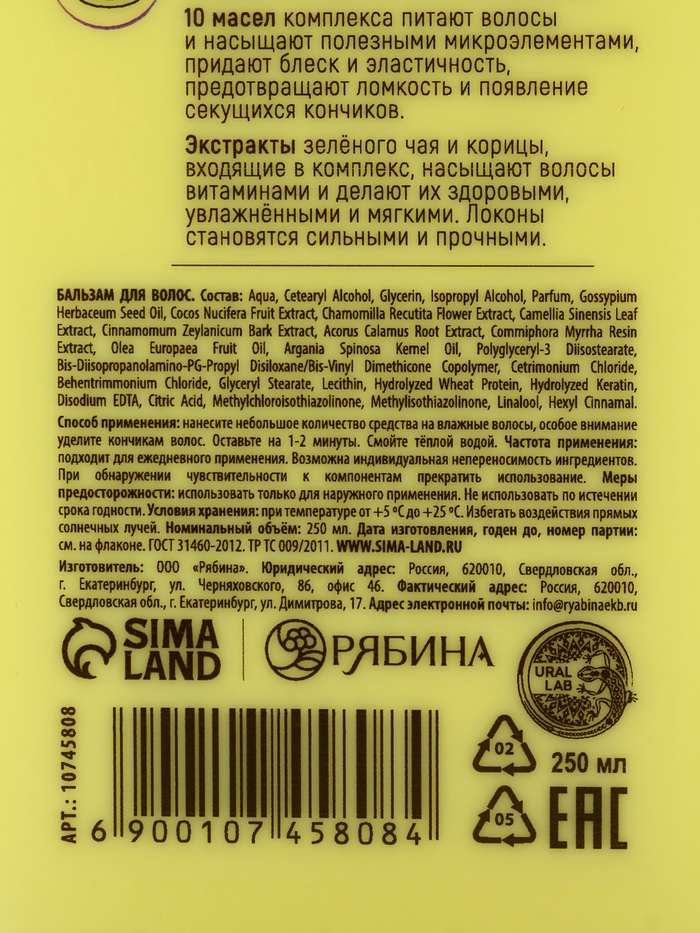 Составляющие набора: Бальзам для волос