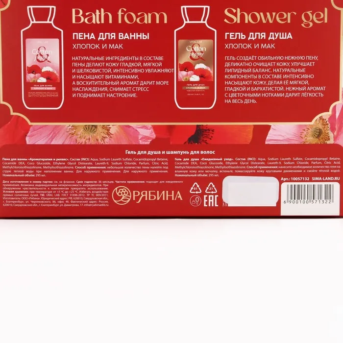 Подарочный набор URAL LAB Cotton poppy, гель для душа и пена для ванны 2×295 мл, FLORAL & BEAUTY — Характеристики