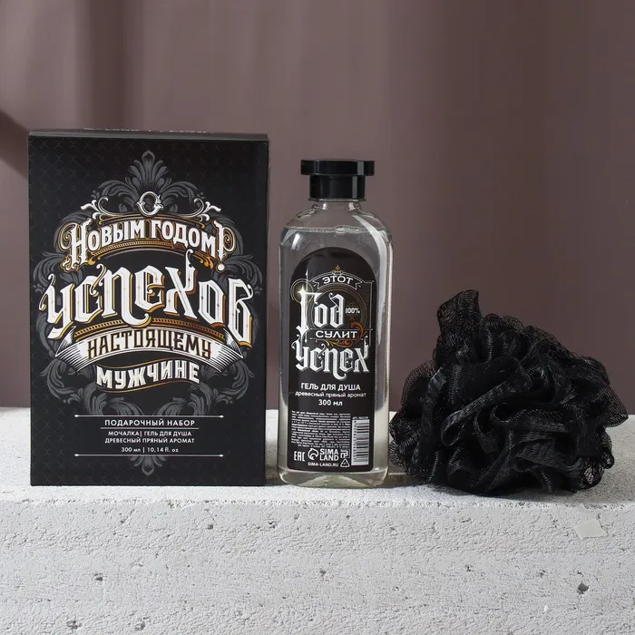 Подарочный набор «Успехов в Новом году!», гель для душа 300 мл и мочалка для тела, Чистое счастье — Характеристики