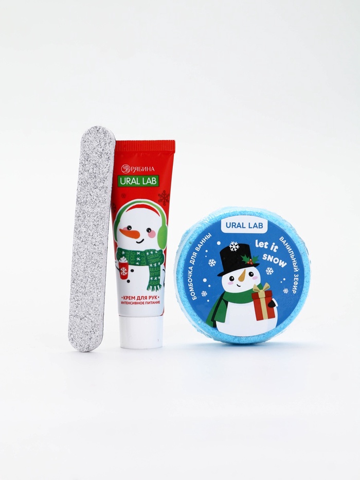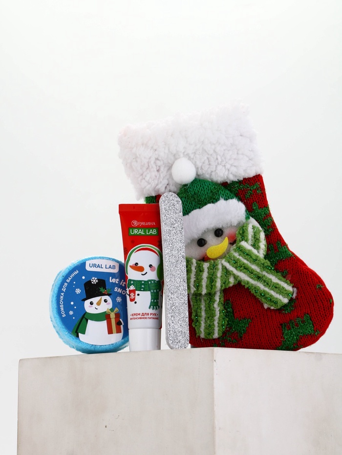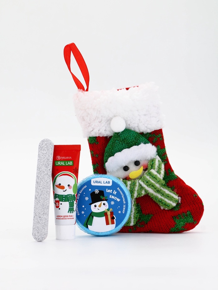 Подарочный набор в новогоднем носке «Снеговик», крем для рук, бомбочка для ванны и пилка для ногтей, URAL LAB — Характеристики