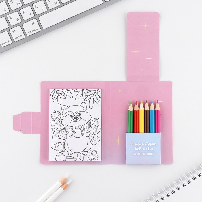 Подарочный набор, в открытке: отрывной блок с заданиями и карандаши «8 марта: Яркая звездочка» — Характеристики