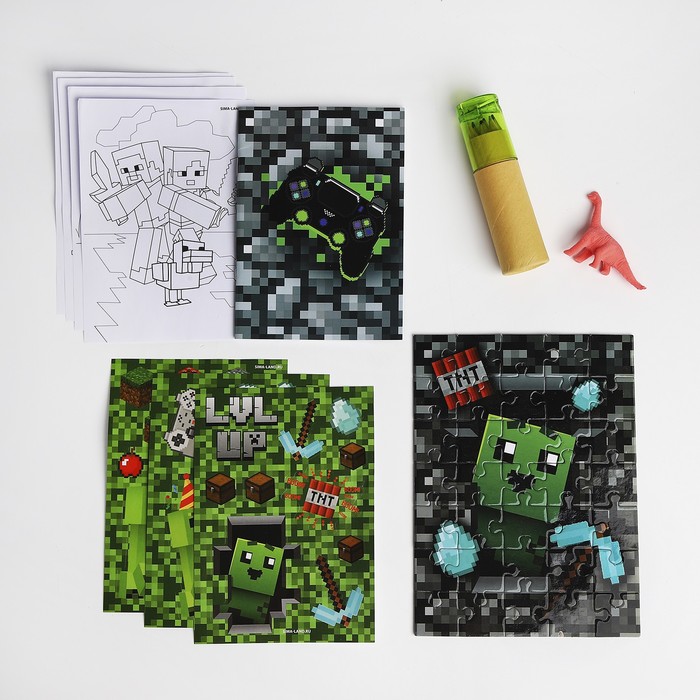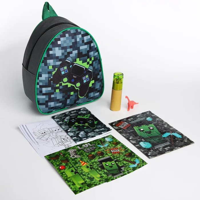 Подарочный набор в рюкзаке «Пиксельный мир», блокнот, раскраска, карандаши, пазлы, наклейки — Характеристики