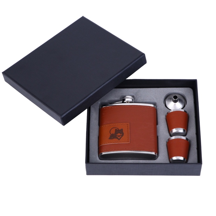 Перед вами идеальное решение вашей проблемы. Подарочный набор «Волк»: фляжка 180 мл, 2 рюмки, воронка в компактной коробке, которая имеет презентабельный внешний вид. Такой набор удобно брать с собой в путешествие или в деловую поездку.