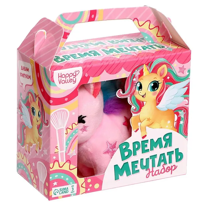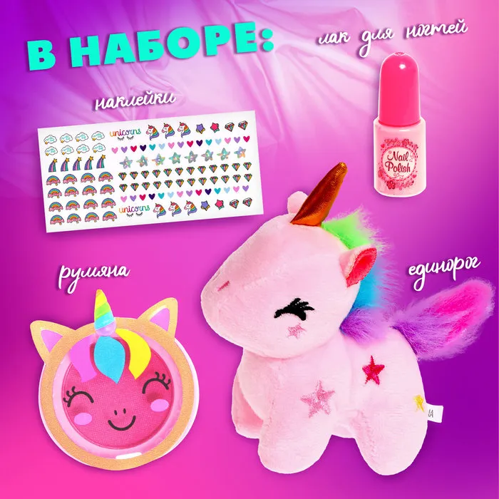 - Мягкая игрушка — единорог высотой 12 см. Питомец очень компактный, поэтому его удобно захватить с собой на прогулку, в гости и даже в путешествие!