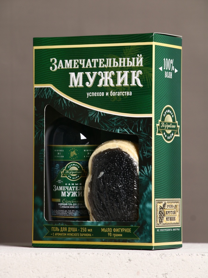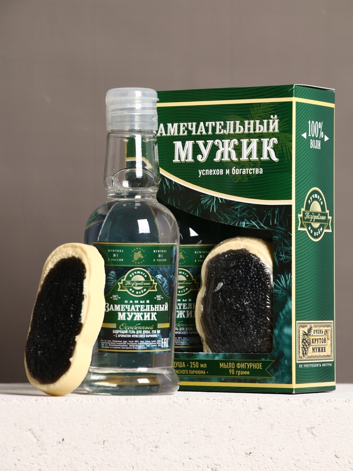 Подарочный набор «Замечательный мужик», гель для душа водка 250 мл и мыло для рук, Чистое счастье — Характеристики