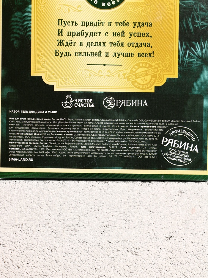 Составляющие набора: Мыло