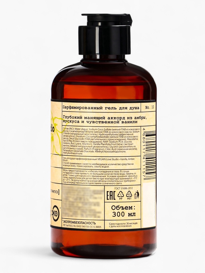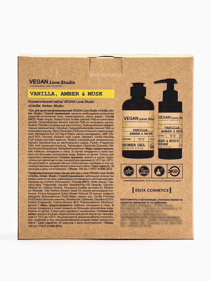 Подарочный набор женский VEGAN.Love.Studio, гель для душа, крем-лосьон, парфюмированный, ваниль, амбра, мускус — Характеристики