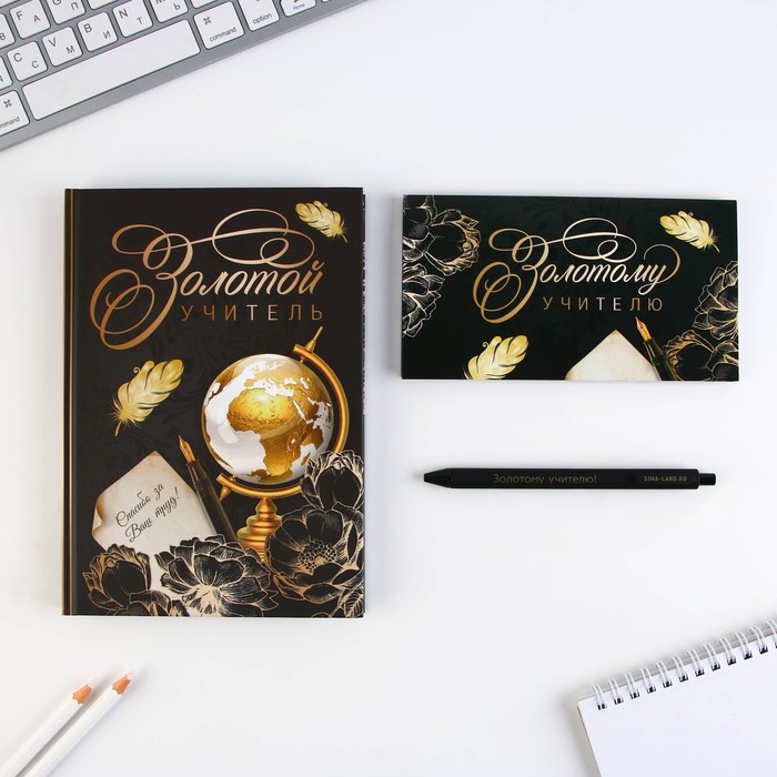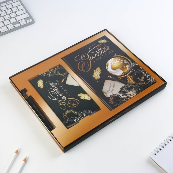 Подарочный набор «Золотой учитель», ежедневник А5 160 листов, планер 50 листов и ручка пластик — Характеристики