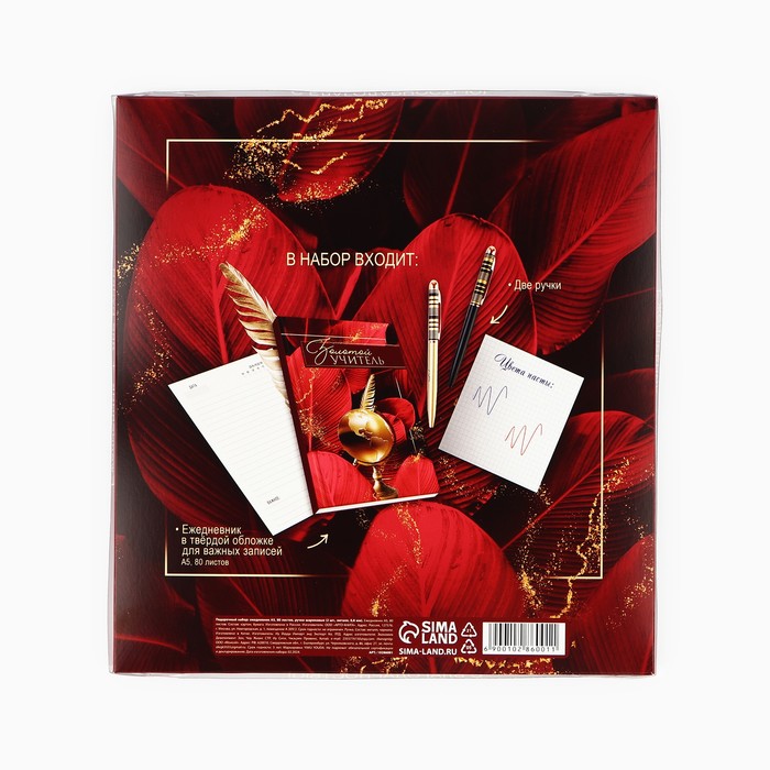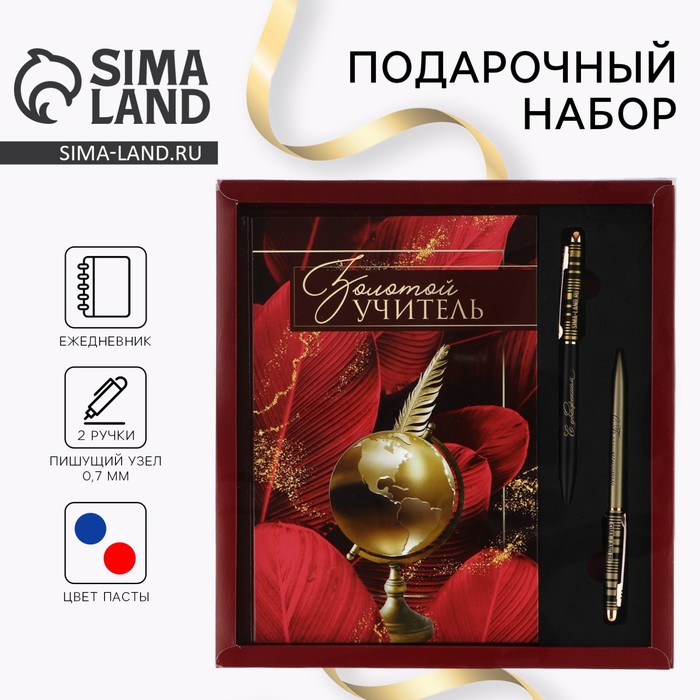 Подарочный набор «Золотой учитель»: ежедневник А5, 80 листов и 2 ручки шариковые, 1 мм — Характеристики