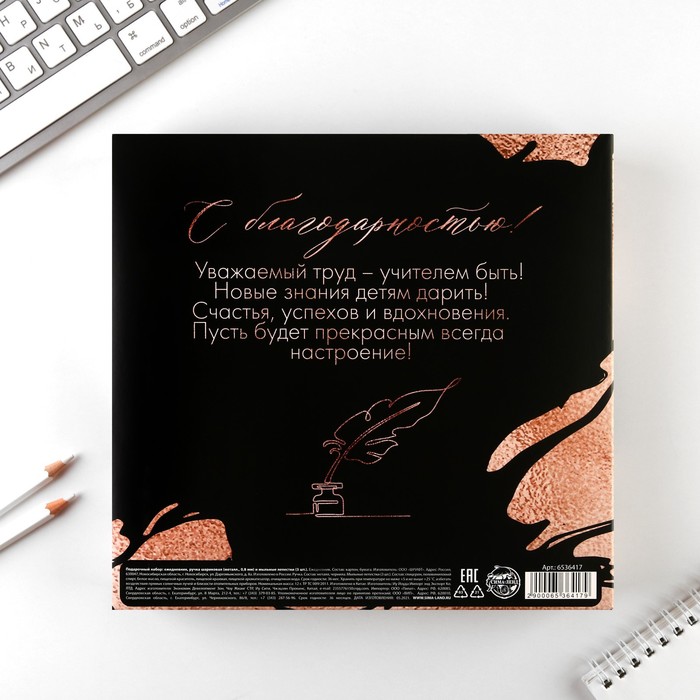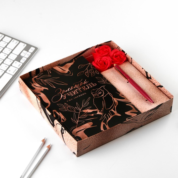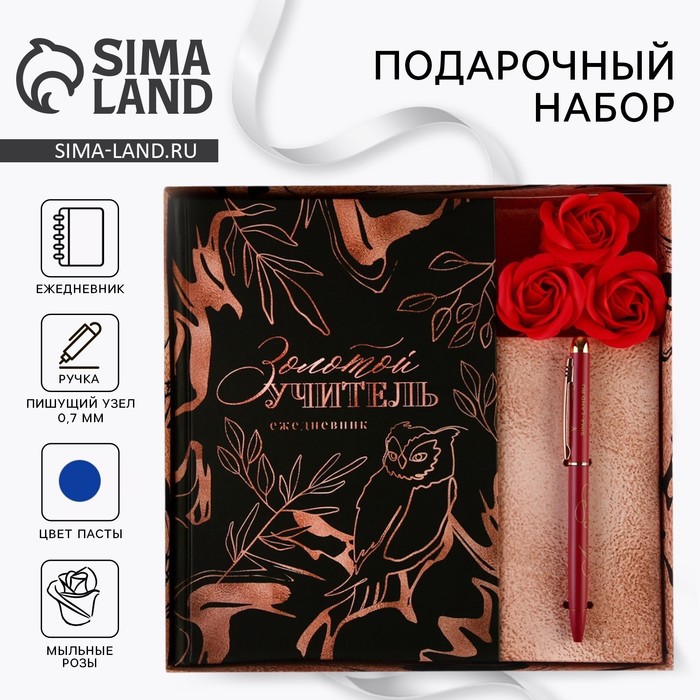 Подарочный набор «Золотой учитель», ежедневник А5 80 листов, ручка шариковая металл 0.8 мм, мыльные лепестки 3 шт. — Характеристики