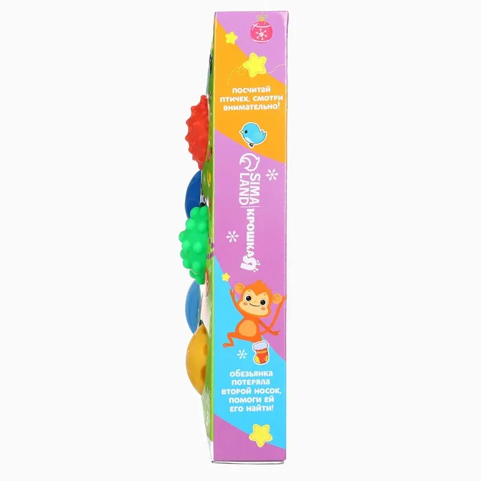 Давление на фактурную поверхность мячиков стимулирует и благоприятно воздействует на нервные окончания, ответственные за большинство процессов в организме. Шарики имеют яркие цвета, которые способствуют развитию зрения, а пищалка внутри развивает слуховое восприятие.