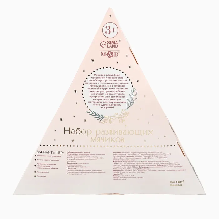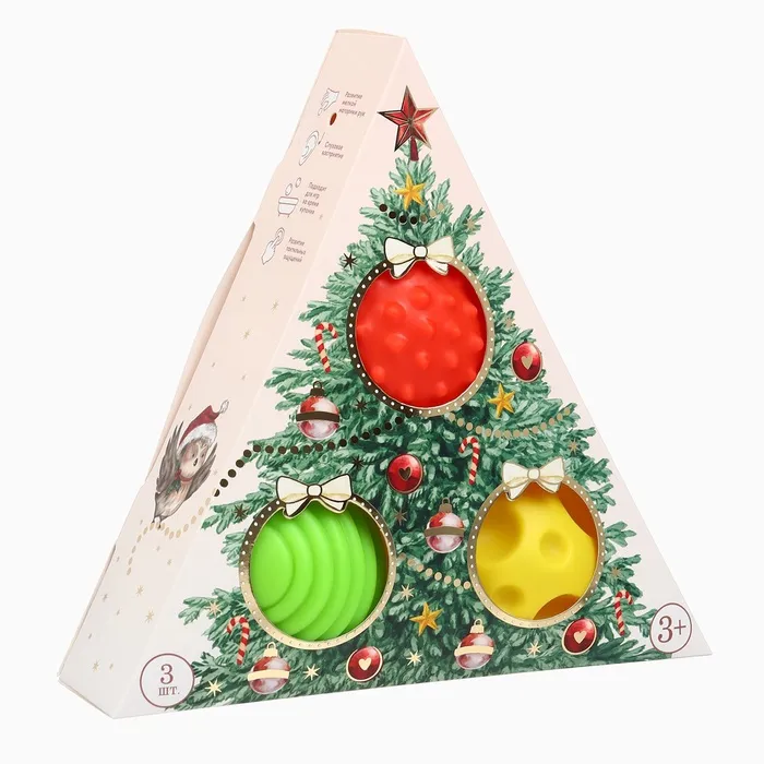 Подарочный новогодний набор развивающих тактильных мячиков M&B «Рождественская ёлочка», 3 шт. — Характеристики