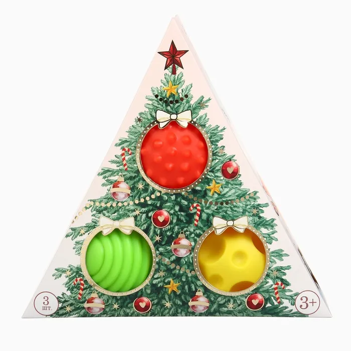 Подарочный новогодний набор развивающих тактильных мячиков M&B «Рождественская ёлочка», 3 шт.