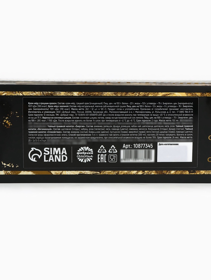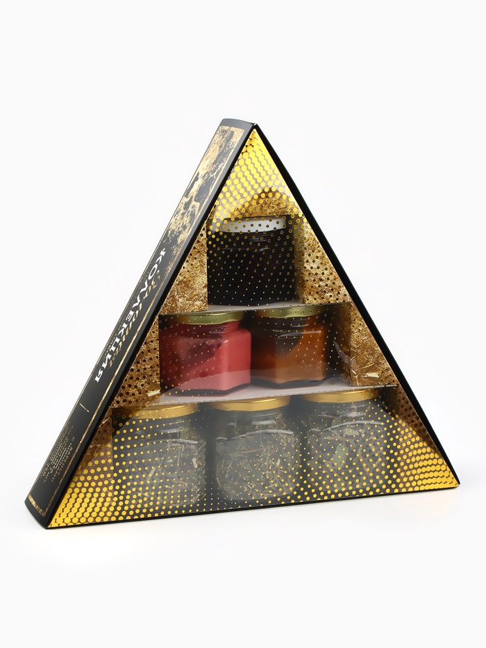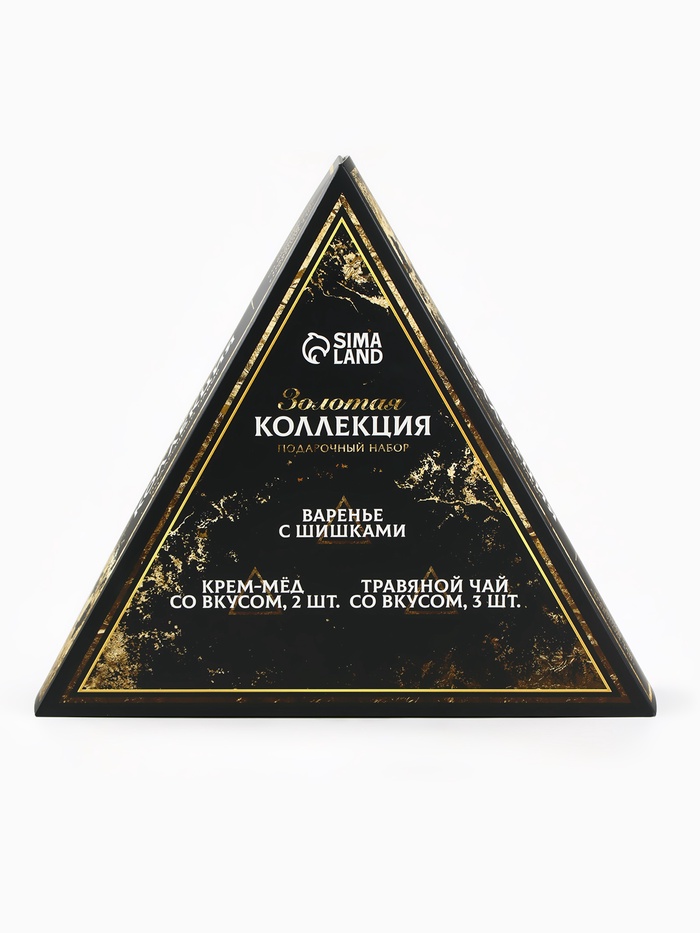 Подарочный новогодний набор «Золотая коллекция»: чай травяной 25 г × 3 шт., варенье с шишками 100 мл., крем-мёд 120 г × 2 шт. — Характеристики