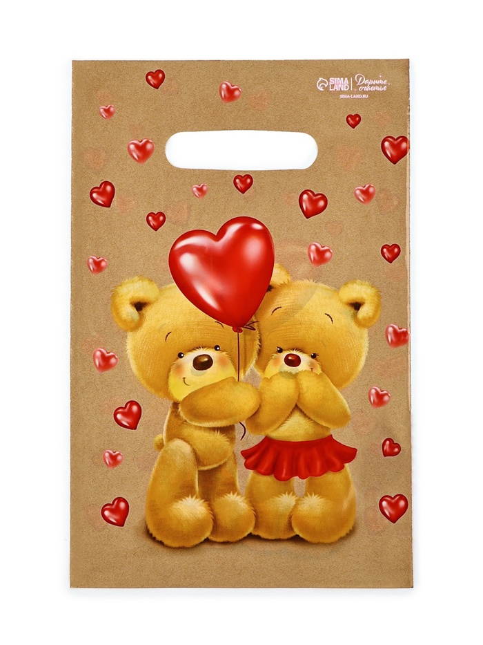 Подарочный пакет, полиэтиленовый, с вырубной ручкой, «Мишки», 20×30 см — Характеристики
