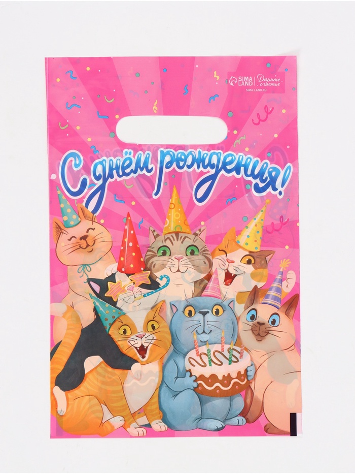 Подарочный пакет, полиэтиленовый, с вырубной ручкой, «С Днём рождения», 20 х 30 см — Характеристики