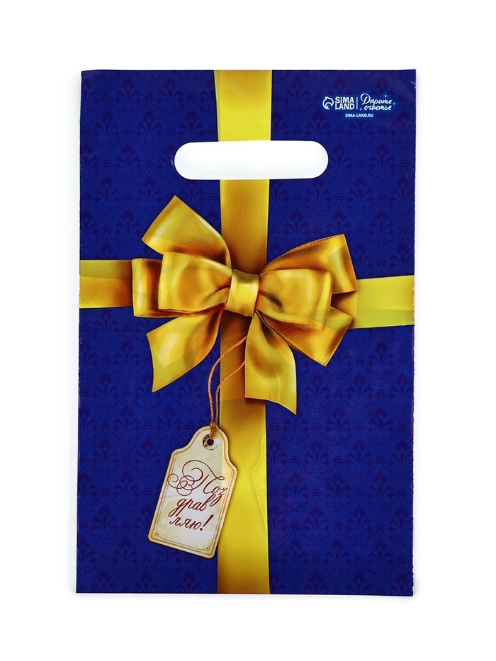 Подарочный пакет, полиэтиленовый, с вырубной ручкой, «Золотой бант», 20×30 см, — Характеристики