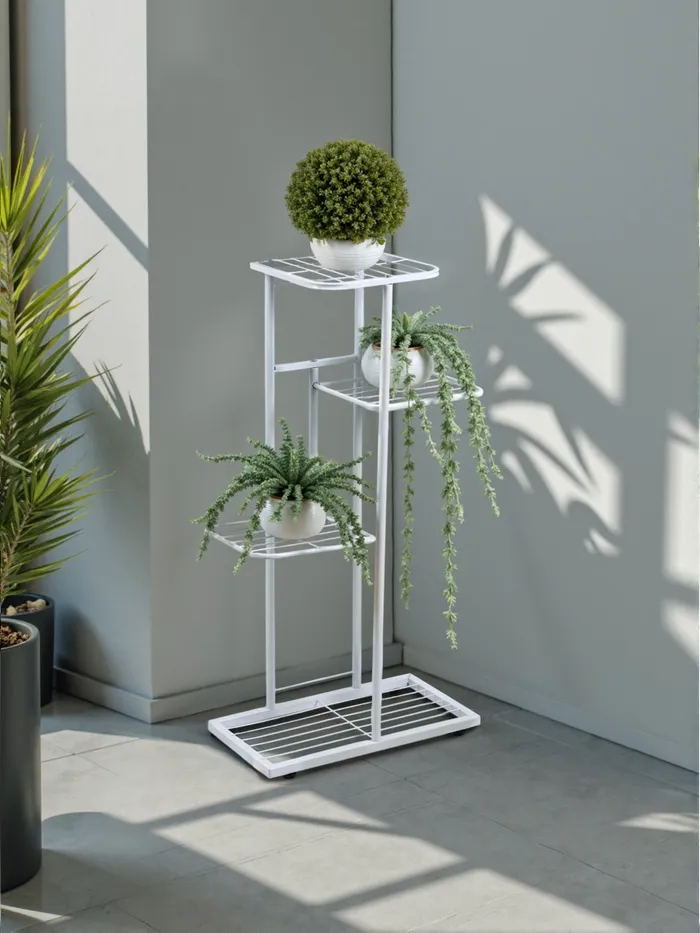 Подставка для цветов Greengo, 4 полки, 43×22×82 см, напольная, металл, белая