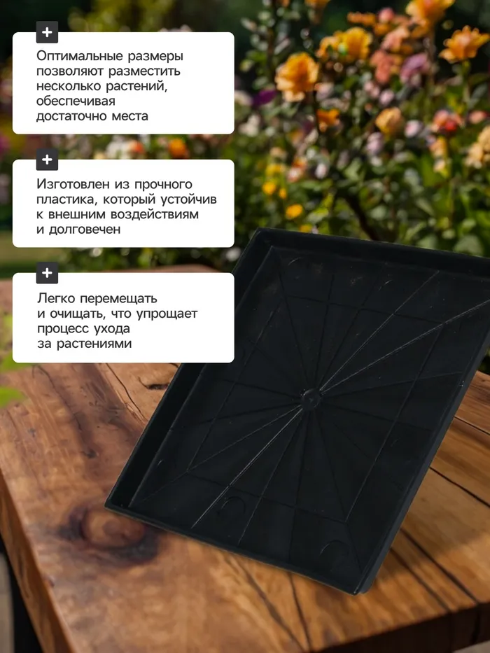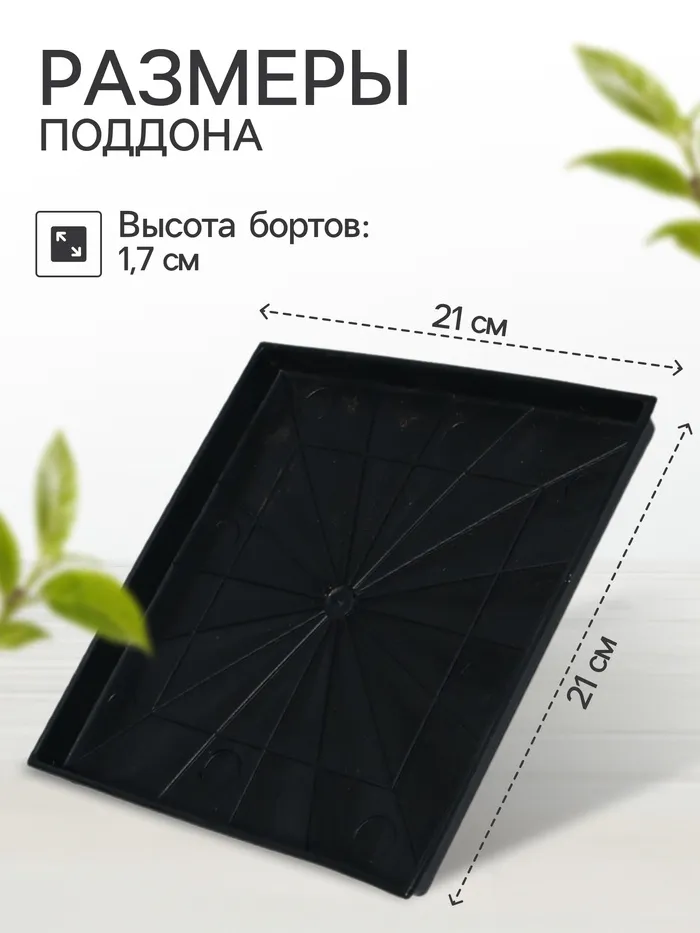 Поддон для рассады, 21×21×1.7 см, пластик, чёрный — Характеристики