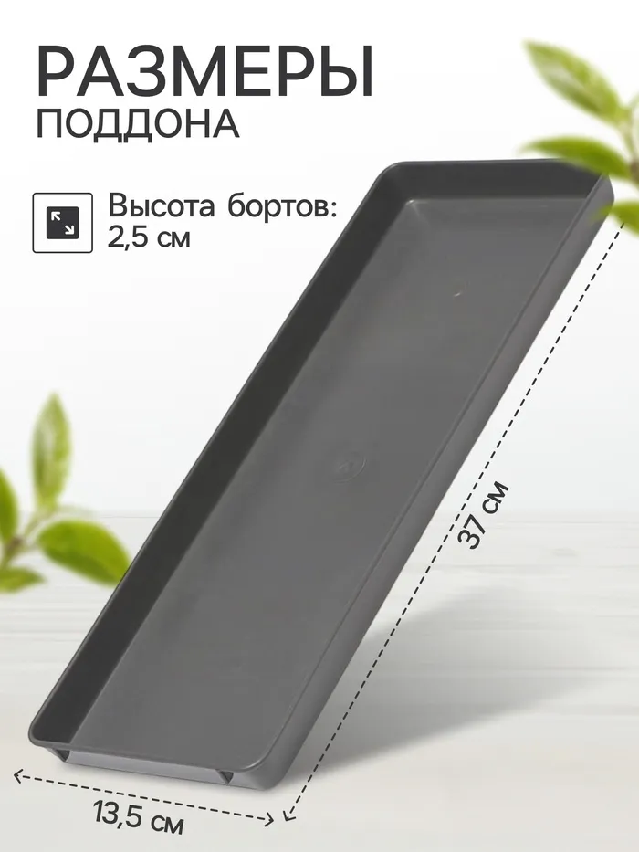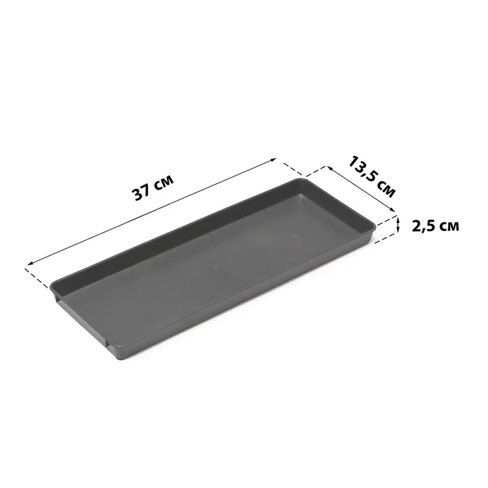 Поддон для рассады, 37 × 13 × 2,5 см, пластик, серый — Характеристики