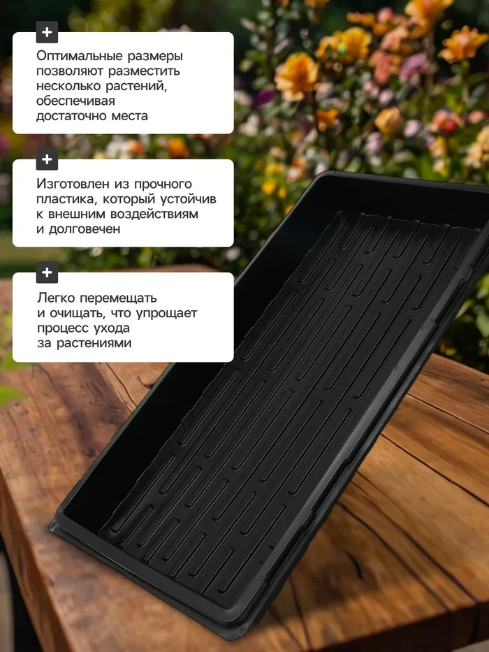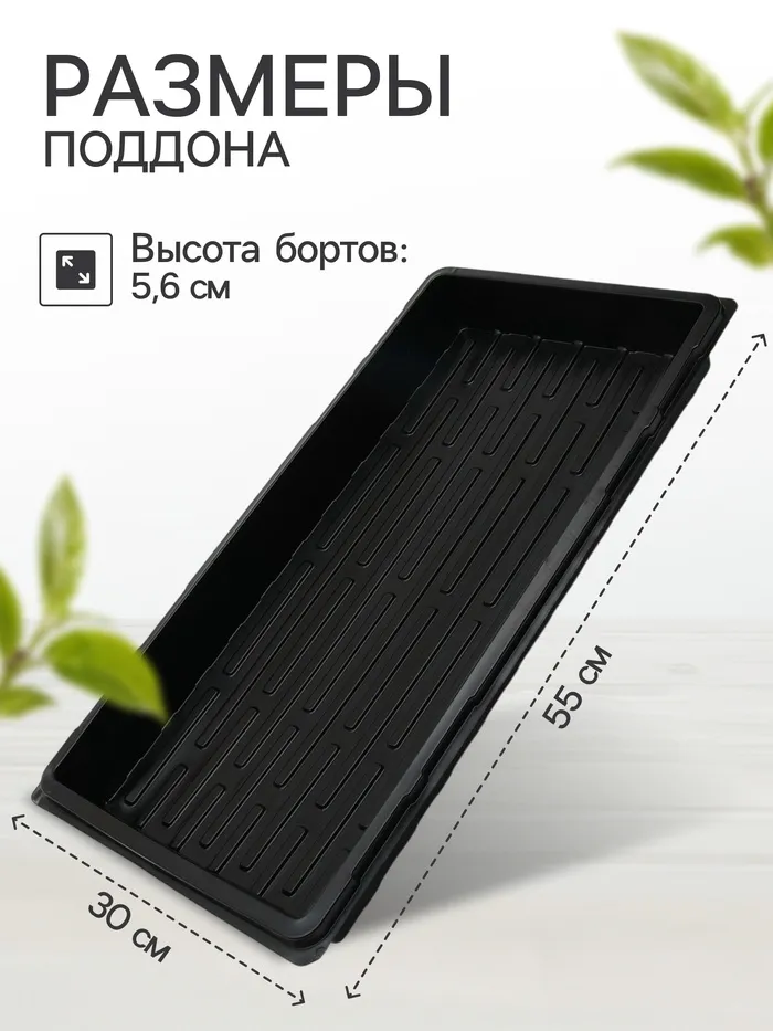 Поддон для рассады, 55×30×5.6 см, пластик, чёрный, Greengo — Характеристики