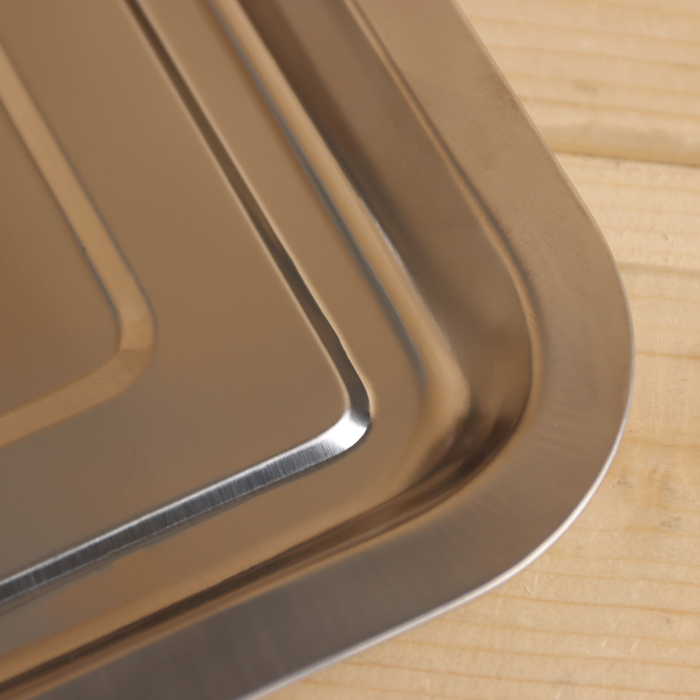 - Высококачественные материалы: Поддон изготовлен из прочной и долговечной нержавеющей стали, которая устойчива к коррозии и воздействию высоких температур.