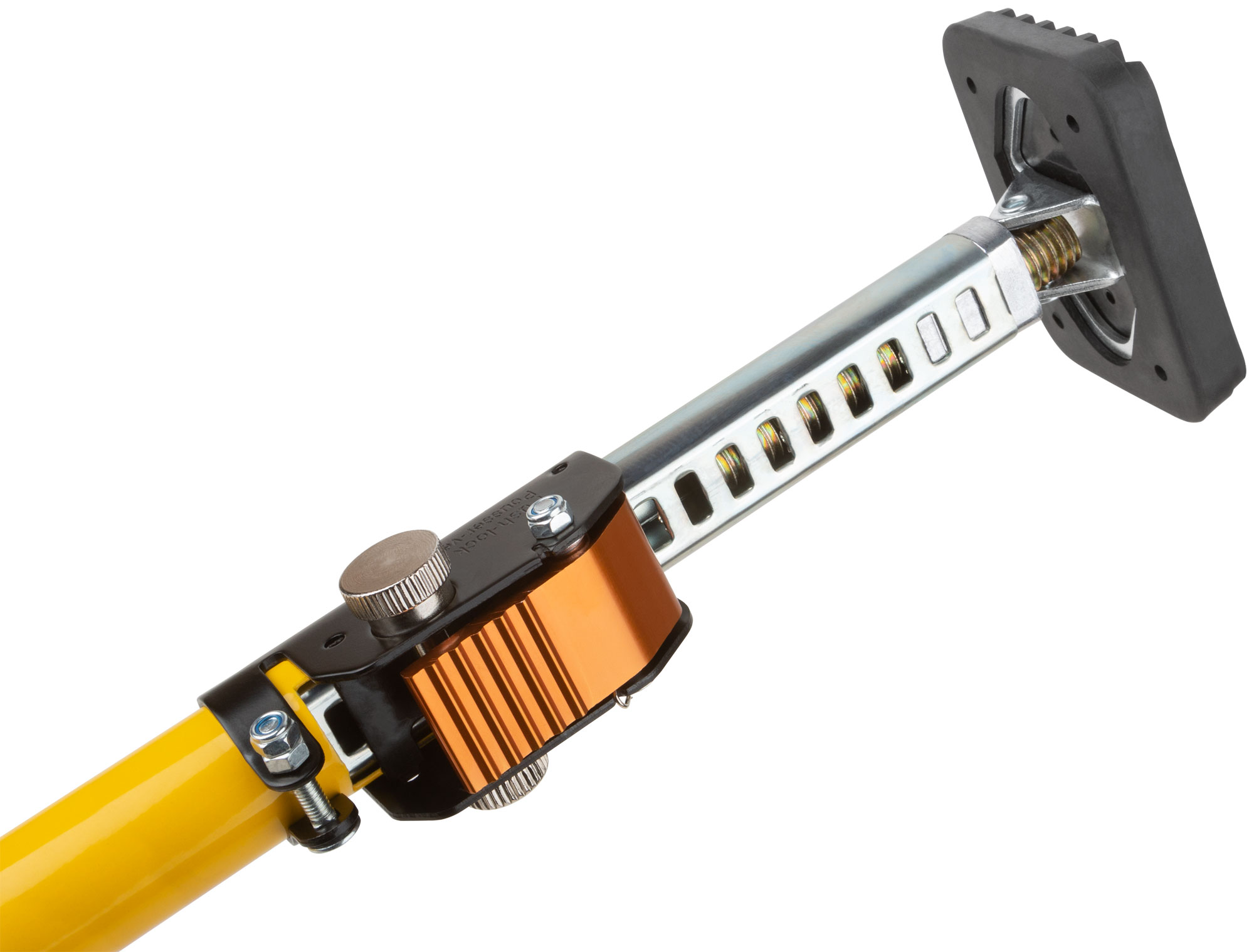 Конструкция оборудована телескопическим штоком, который фиксируется на высоте от 1600 до 2900 мм, обеспечивая гибкость в работе. Специальный механизм надежно удерживает шток, а клавиша с предохранителем предотвращает случайное разблокирование.