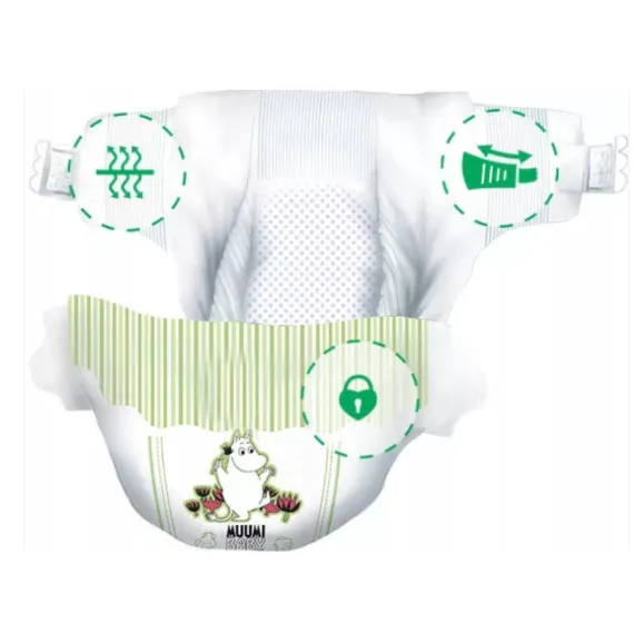 Подгузники “MUUMI Bebi” — это одноразовые гипоаллергенные подгузники из Финляндии. Превосходно пропускают воздух, дышащие. Моментально впитывают и надежно удерживают влагу.