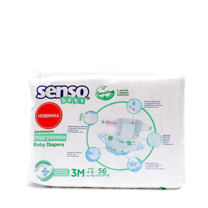 Подгузники детские Senso Baby Sensitive 3М MIDI (4-9 кг), 56 шт. — Характеристики