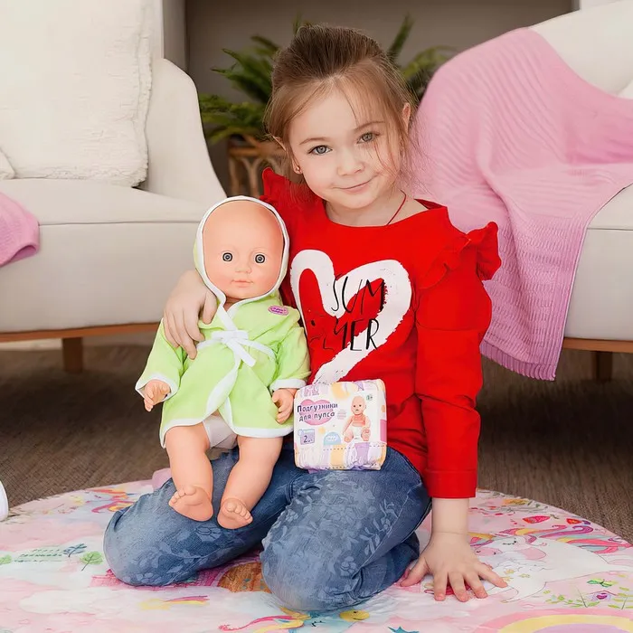 Для увлекательных игр в дочки-матери малышке необходимы разнообразные аксессуары. С подгузниками девочка будет заботиться о пупсике как о настоящем младенце. Малышка наденет их на игрушечного карапуза и отправится на прогулку.