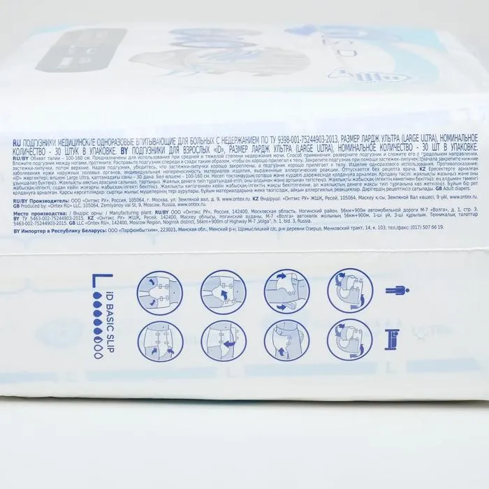 Подгузники для взрослых iD Slip Basic, размер L, 30 шт.