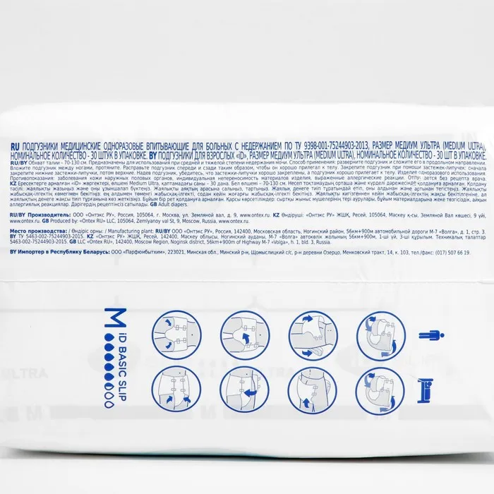 Подгузники для взрослых iD Slip Basic, размер M, 30 шт. — Характеристики