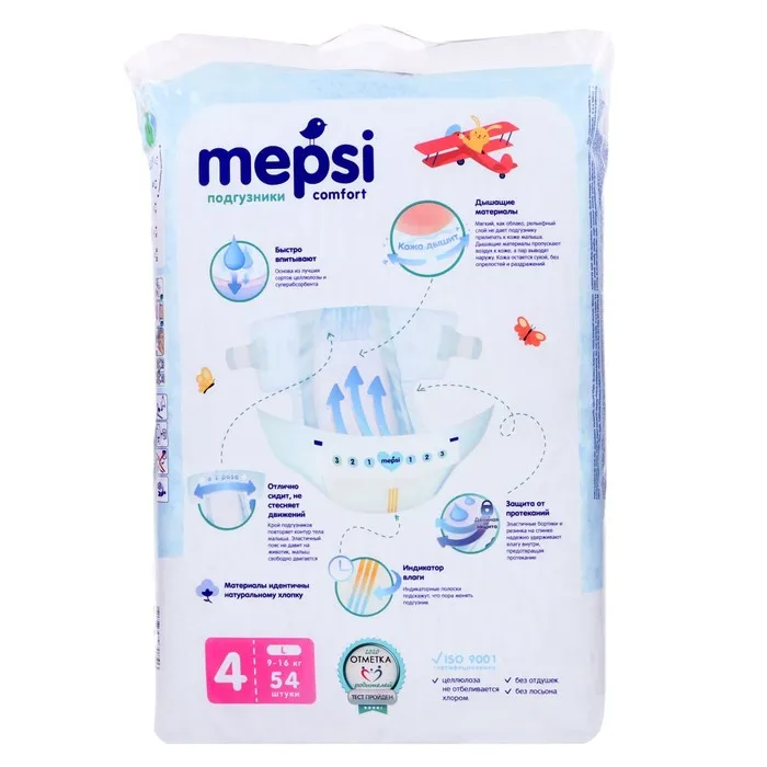 Подгузники Mepsi L (9-16кг), 54 шт — Характеристики