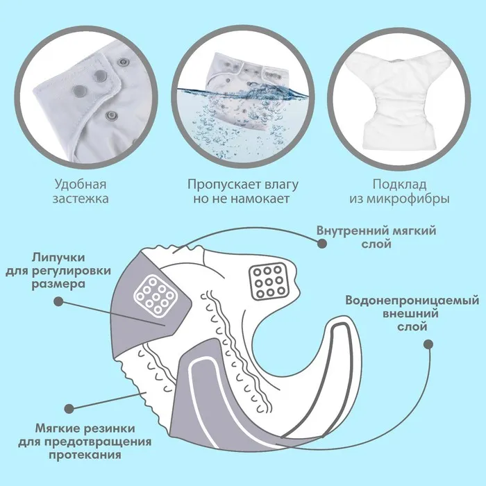 Они спокойно выдерживают всю ночь до утра. 3D рельеф внутренней поверхности уменьшает площадь касания подгузника с кожей ребенка, что помогает избежать раздражения, а благодаря двухслойному материалу, поверхность всегда остается сухой.