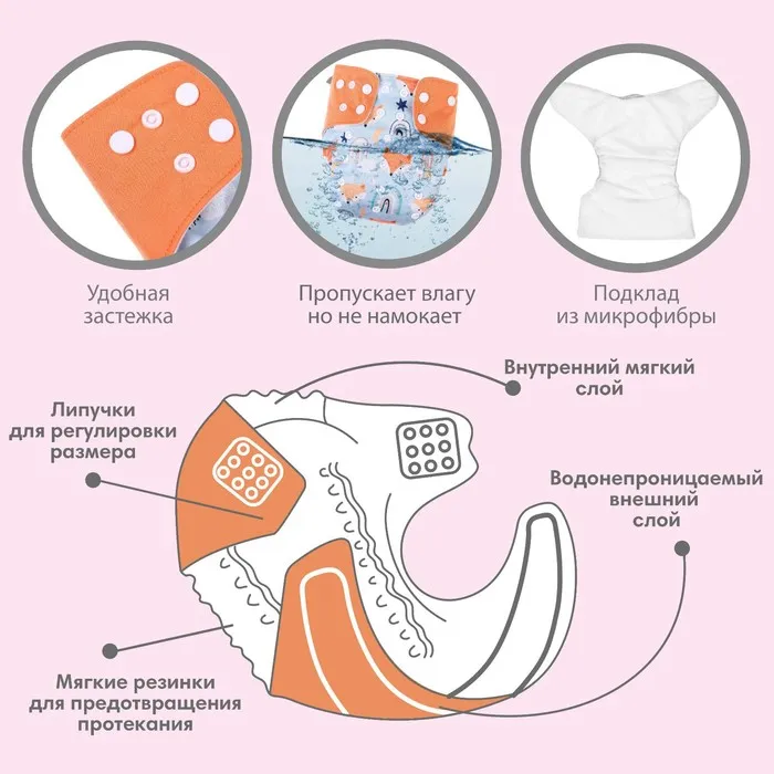 Нежные бортики-манжеты не натирают кожу, а индикатор наполнения покажет, когда нужно сменить подгузник.