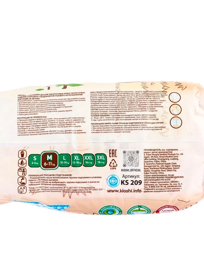 Подгузники-трусики KIOSHI , Ультратонкие, M 6-11 кг, 42 шт — Характеристики