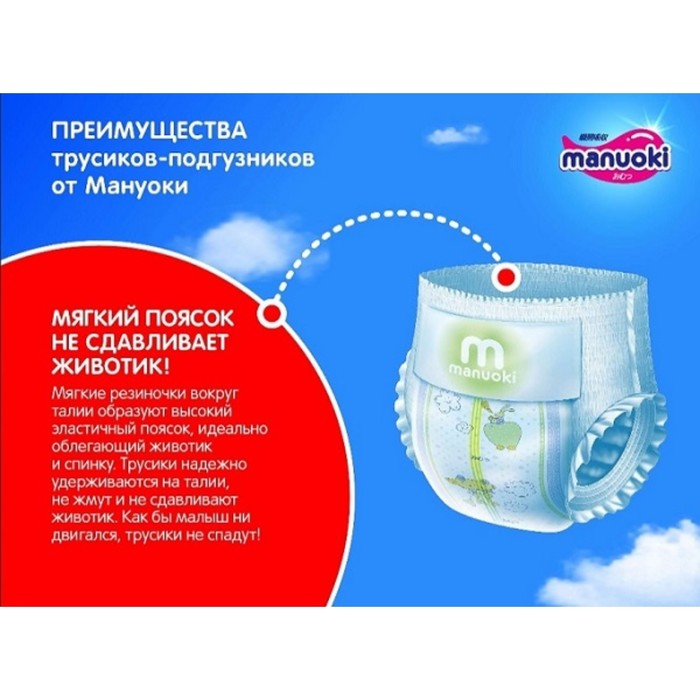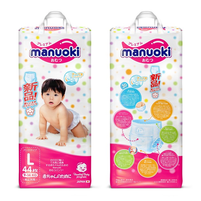 Подгузники-трусики Manuoki L, 9-14 кг, 44 шт — Характеристики
