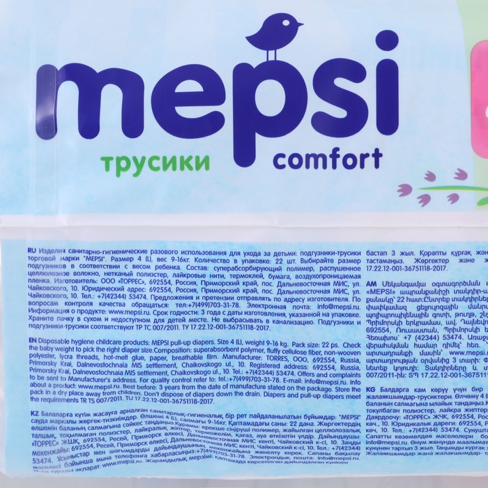 Подгузники-трусики Mepsi размер L (9-16), 22 шт — Характеристики