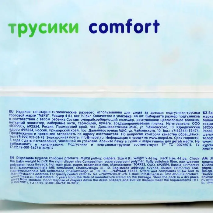Подгузники-трусики Mepsi размер L (9-16 кг), 44 шт — Характеристики