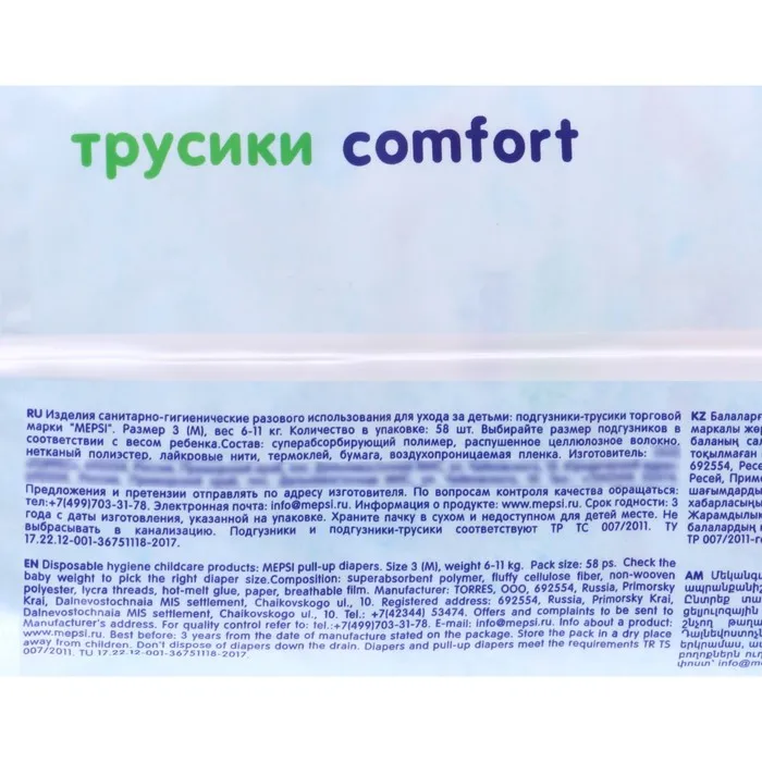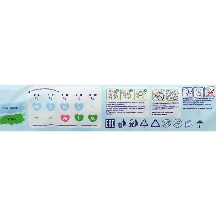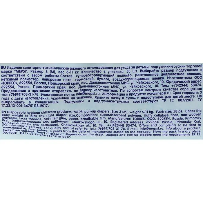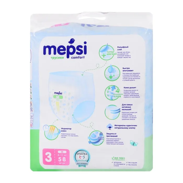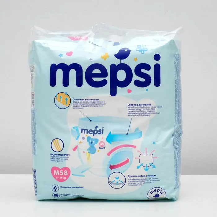 Подгузники-трусики Mepsi размер M (6-11 кг), 58 шт — Характеристики