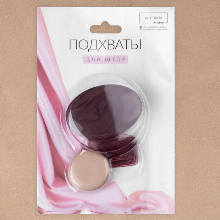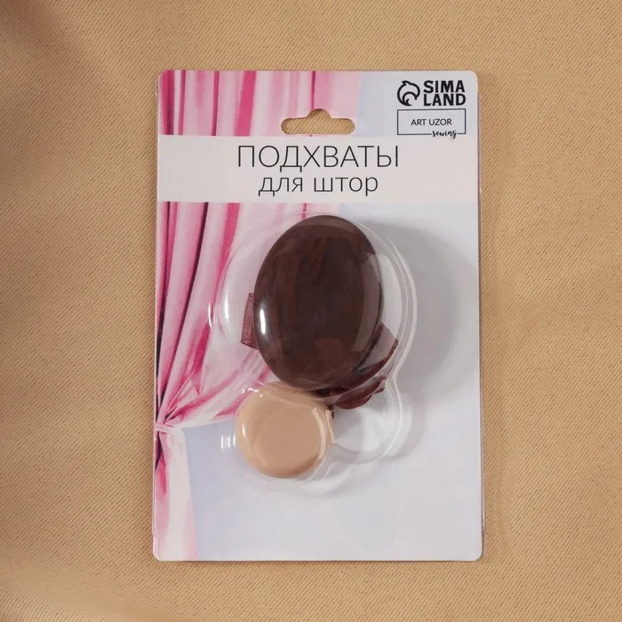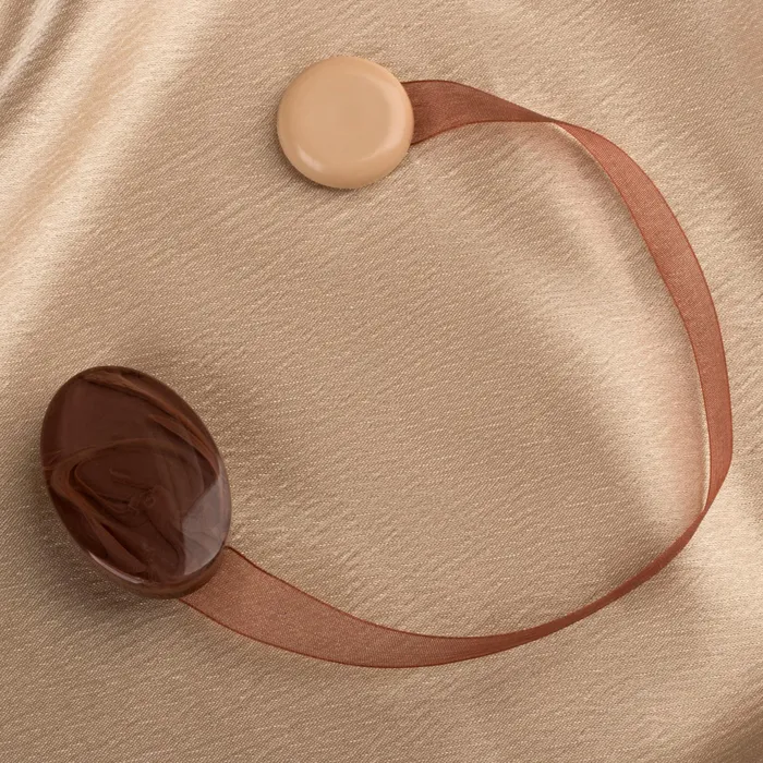 Деталь, которая завершает образ окна овальный подхват на ленте в коричневом цвете — это практичное решение для тех, кто ценит порядок и стиль в интерьере. Компактный размер 5×3,5 см делает его удобным для использования с лёгкими и средними по плотности шторами, а глянцевая поверхность подчёркивает глубину цвета и добавляет акцент в оформлении окна.