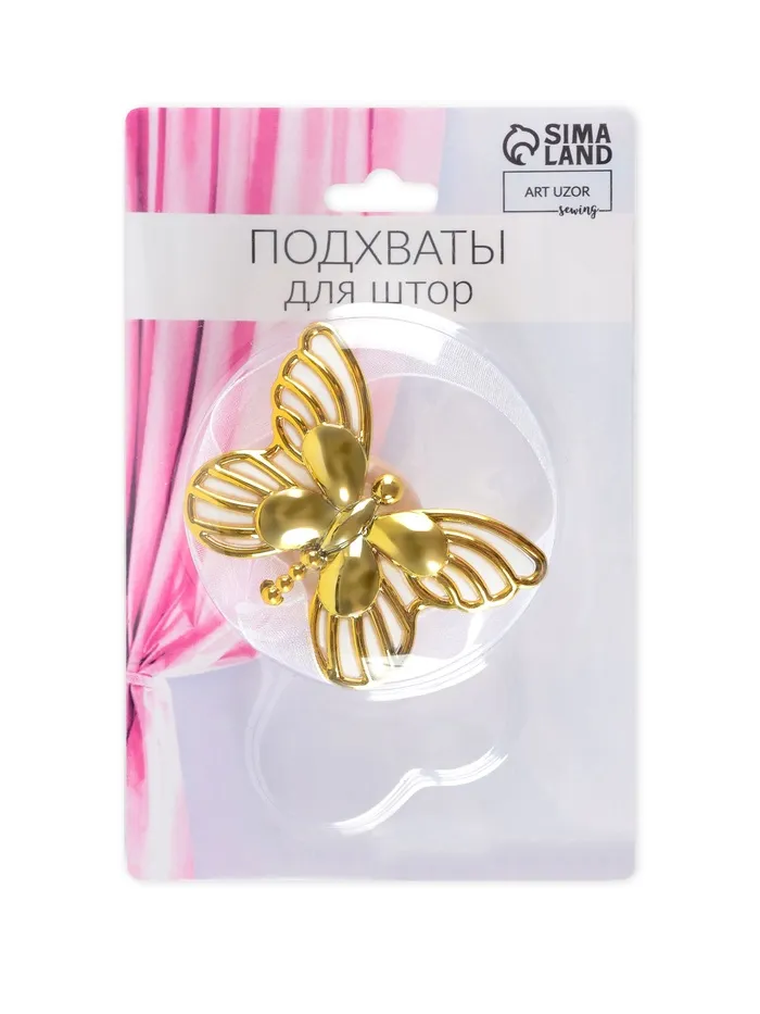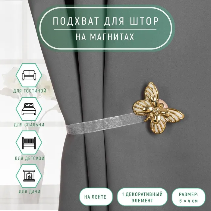 Подхват для штор «Бабочка», 6 × 4 см, 26 см, цвет золотой/белый — Характеристики