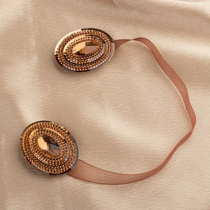 Блестящие подхваты с лаконичными овалами на одном конце ленты и с магнитом на другой наверняка понравятся не только домашним, но и привлекут внимание ваших гостей.