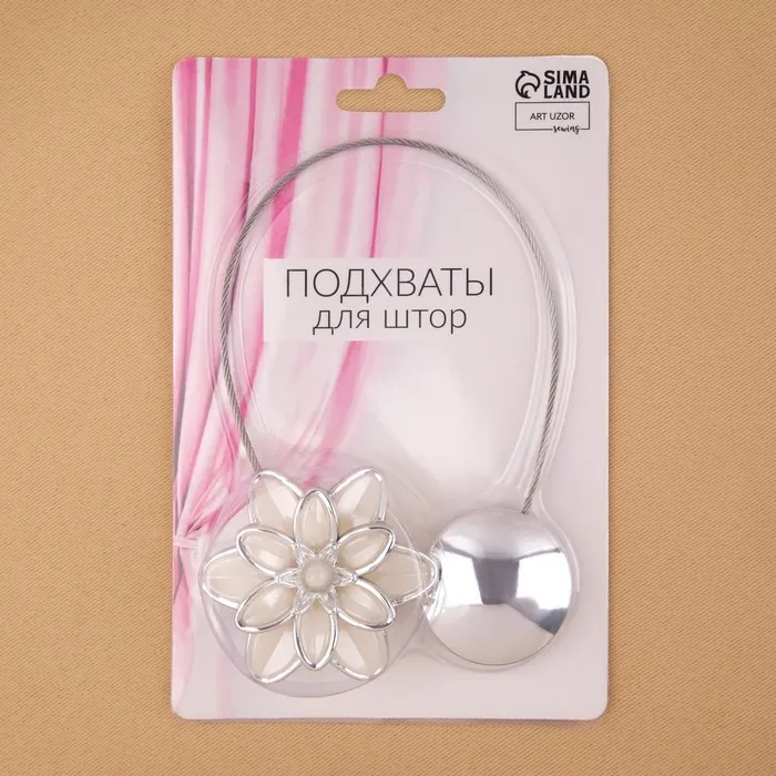 Подхват для штор «Георгин», d=6 см, цвет серебряный, белый — Характеристики