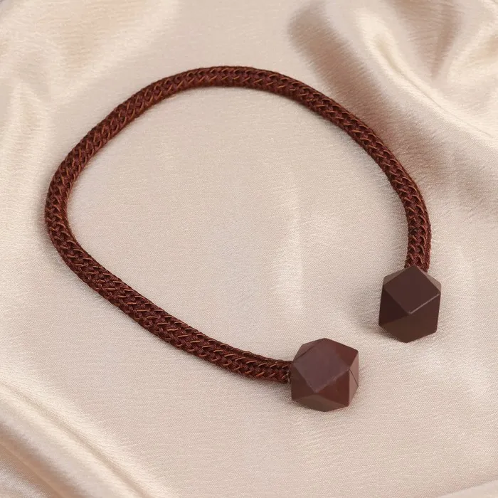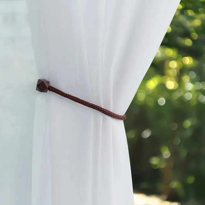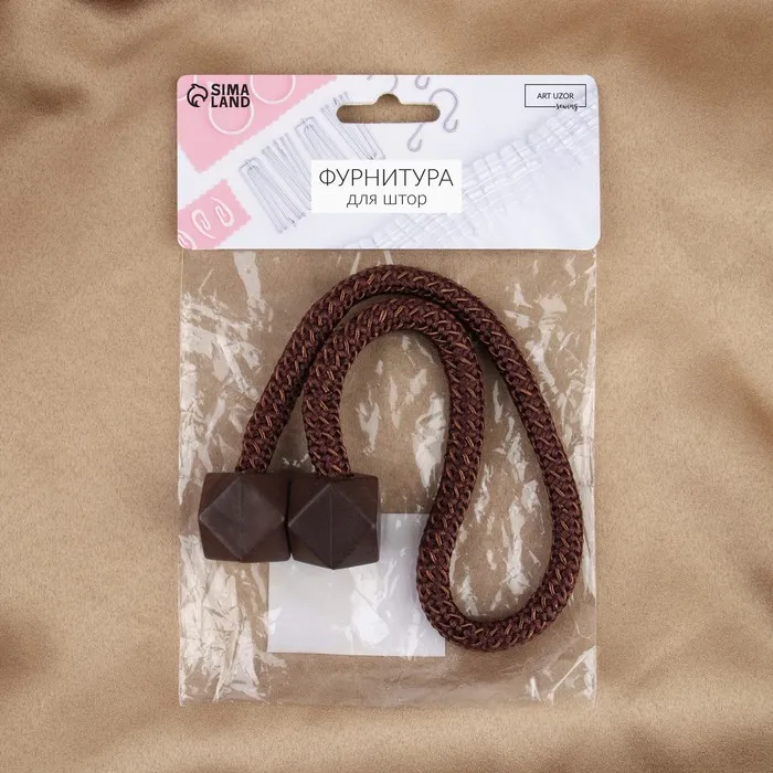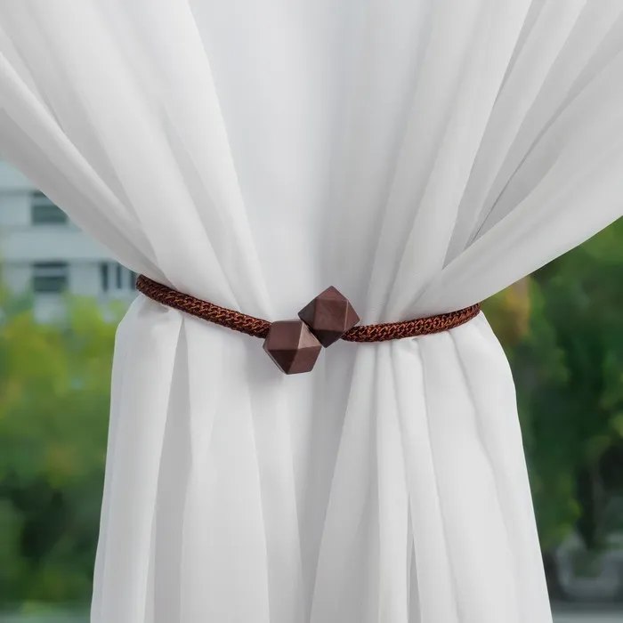 Декоративный подхват для штор с фигурным дизайном в тёмно-коричневом матовом оттенке станет практичным и стильным дополнением к интерьеру. Лёгкий в использовании аксессуар на шнуре помогает аккуратно фиксировать шторы, придавая окну завершённый вид и обеспечивая удобный доступ к дневному свету.