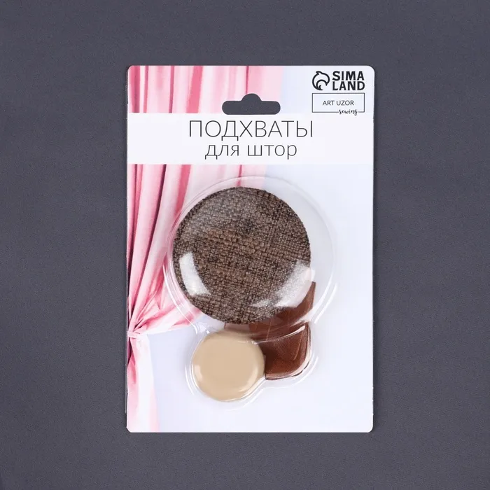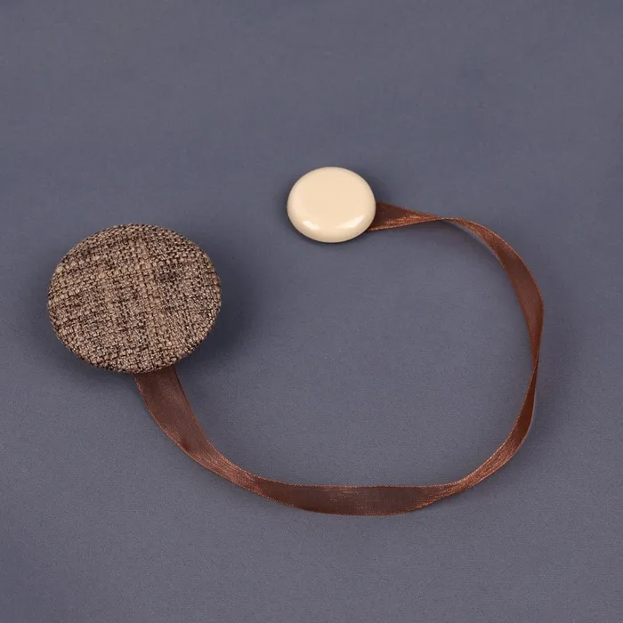 Круглый магнитный подхват в коричневом цвете представляет собой функциональный аксессуар для аккуратного оформления штор. Компактный диаметр 5 см и мягкая текстура полиэстера в сочетании с пластиком обеспечивают удобство использования и долговечность. Такой подхват на ленте помогает собрать ткань без лишних усилий и сохранить её целостность.